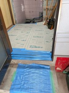 洗面脱衣所もドア周りも養生