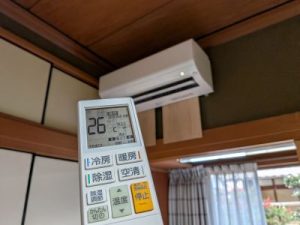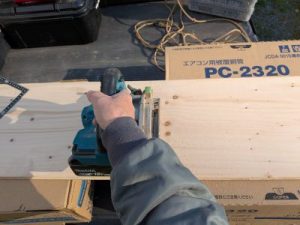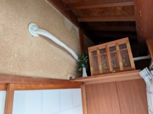 神棚の奥から外の戸袋上に、と穴2つ開け
