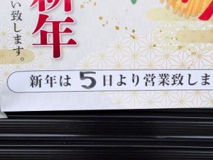 元旦から4日間お休みいただいてましたが