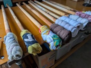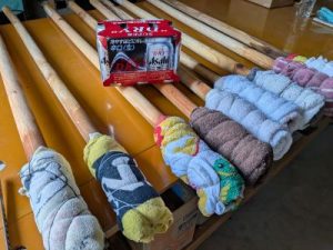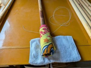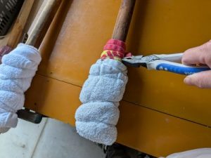 丸杭にタオルを2枚巻いて