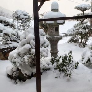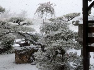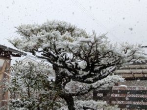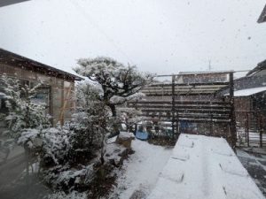 庭も薄っすら雪景色