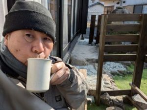 そんなプライベート庭でコーシー飲む