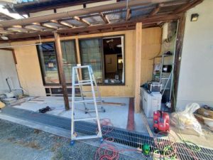 新たに柱を建ててカフェ玄関造ります