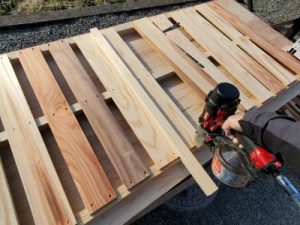 デッキ材を張ってウッドデッキを造る